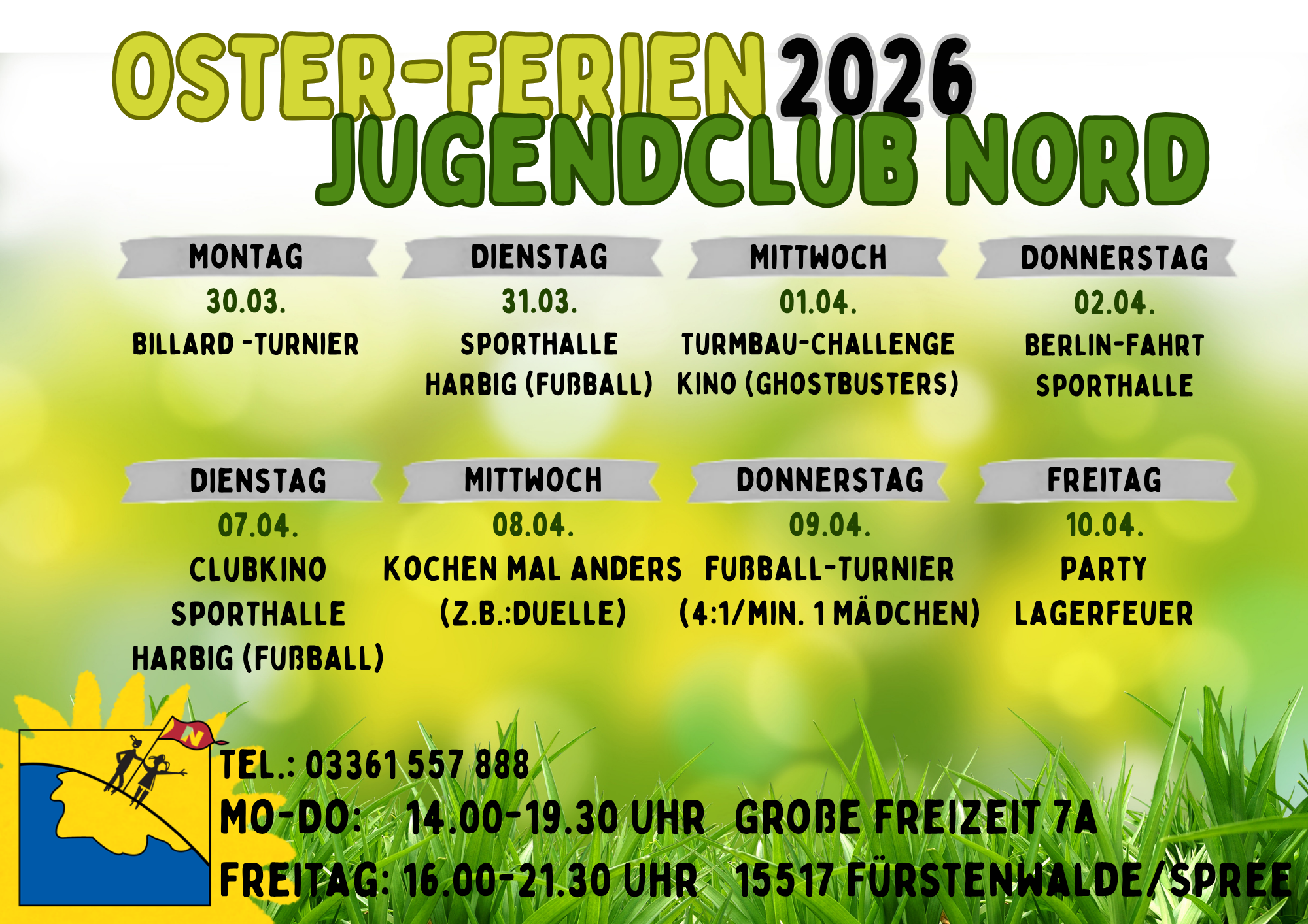 Die Osterferien im Jugendclub Nord werden wieder prall gefüllt mit spaßigen Aktionen für Jedermann/frau 😊